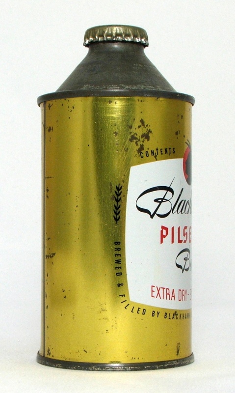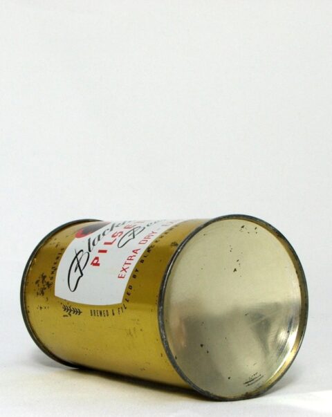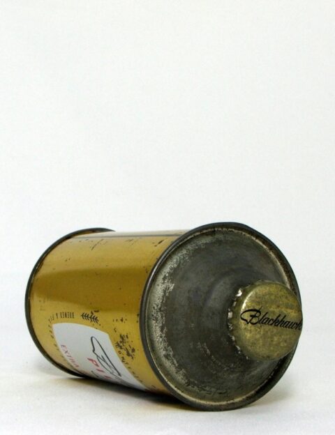 Very scarce, unlisted variation with no alcohol statement along the seam; Some minor spotting but high-grade for these metallic cans.