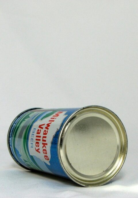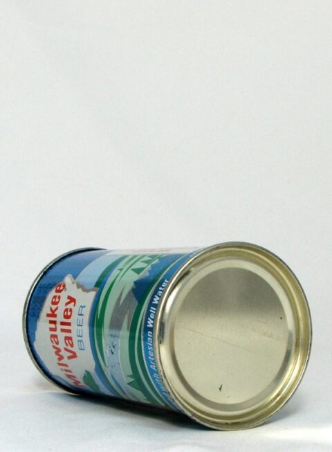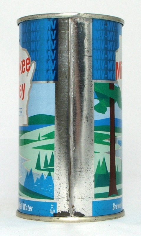 Cool color and art deco graphics on this scarce and desirable Wisconsin beer can; Air-sealed; Rolled nicely with correct style lids; Minor surface imperfections.