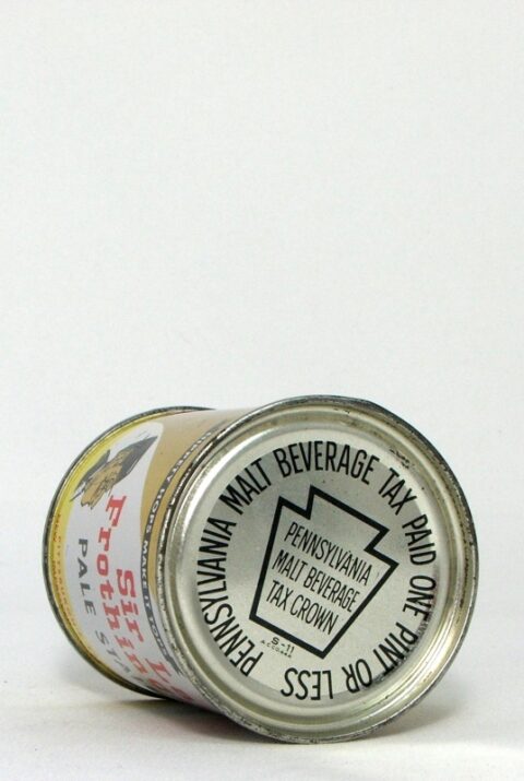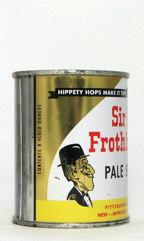Iconic 8 oz. Sir Lady Frothinglosh the “Pale Stale Ale”; Originally a promotional bank top; Professionally replaced correct PA tax lid top; Minor imperfections; Sharp small can!
